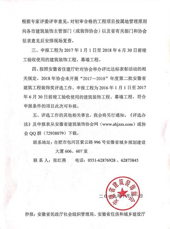 安徽省建筑工程装饰奖评选工作的通知》