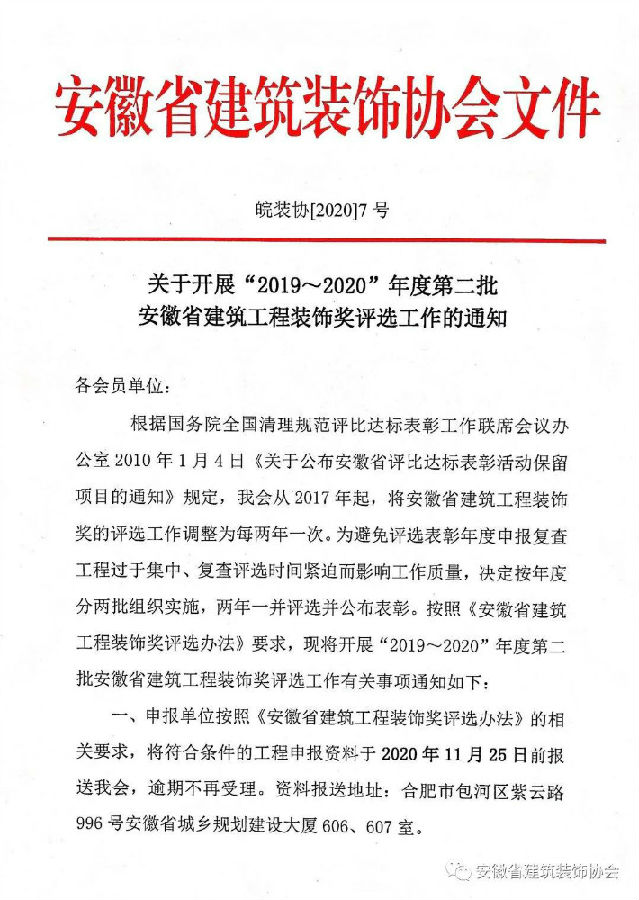 上一篇:《关于开展2020年铜陵市建筑装饰工程优良奖评选工作通知》