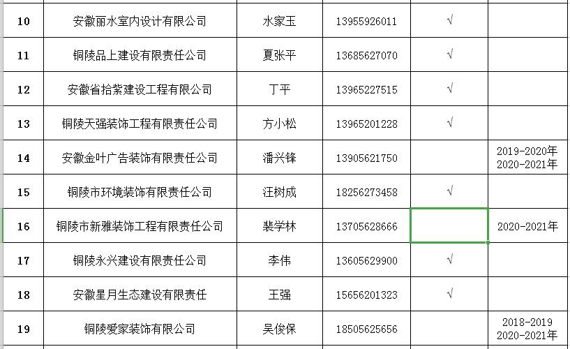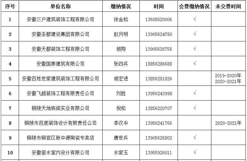 铜陵市建筑装饰协会会员会费缴纳情况公示
