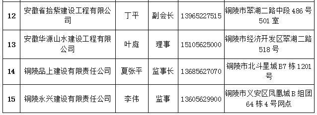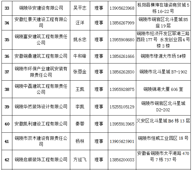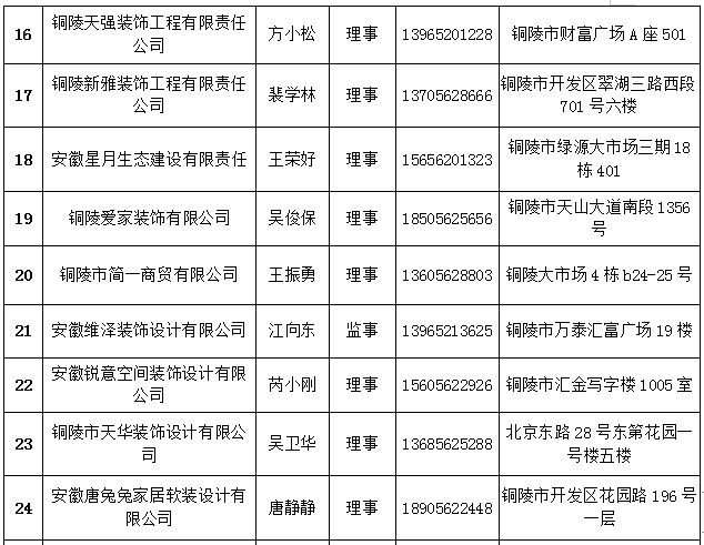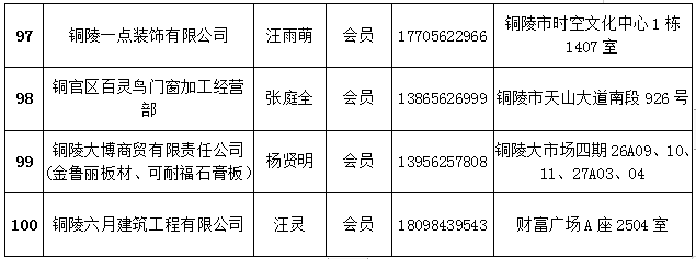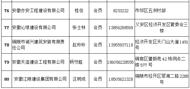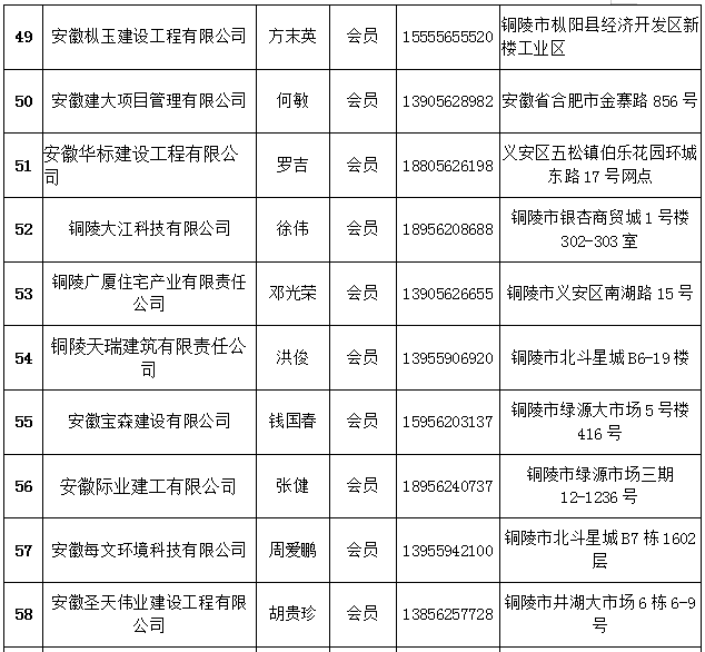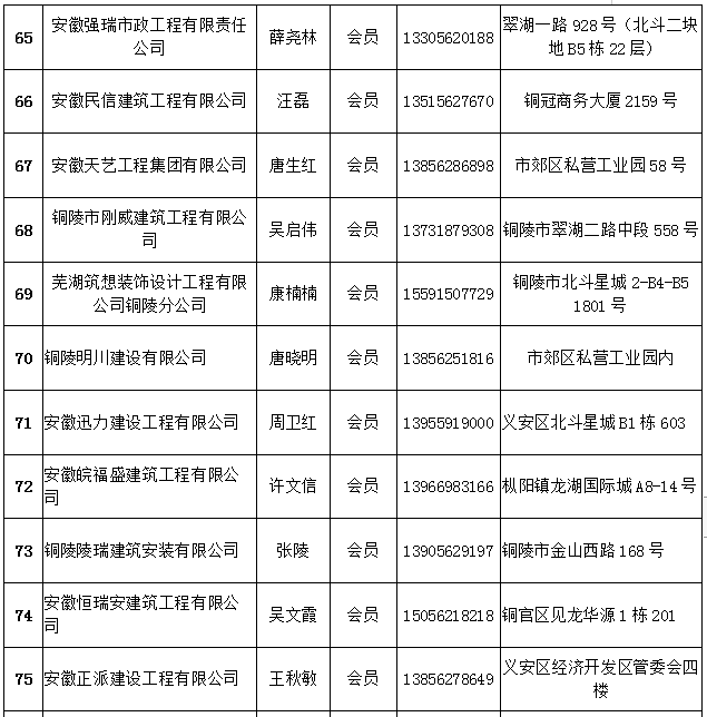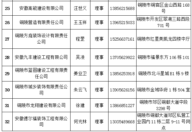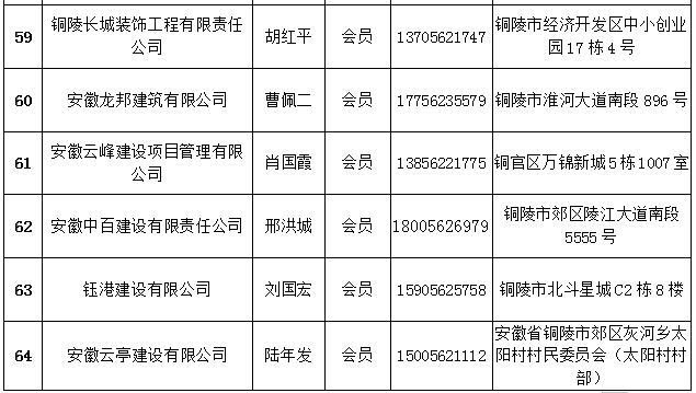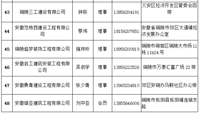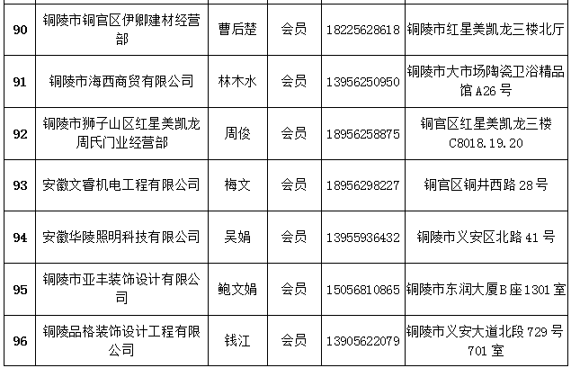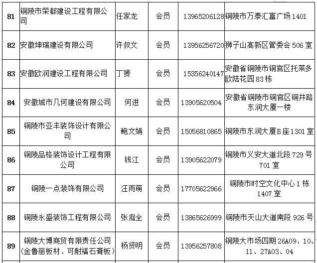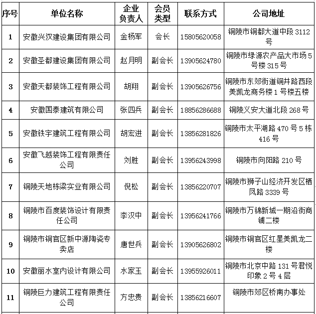 铜陵市建筑装饰协会会员名单
