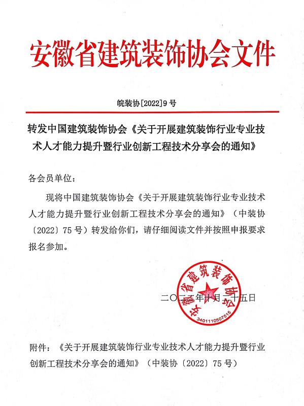附件:关于开展建筑装饰行业专业技术人才能力提升暨行业创新工程技术分享会的通知