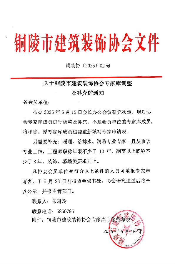 关于铜陵市建筑装饰协会专家库调整 及补充的通知